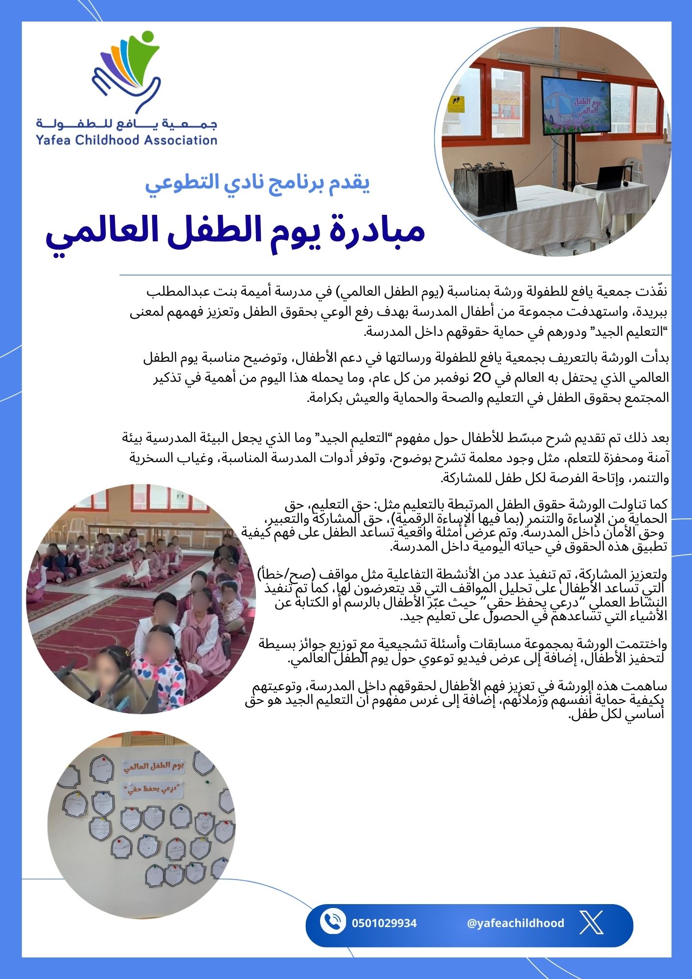 إن الطفولة هي اللبنة الأولى في بناء الإنسان، ومن هنا جاء اهتمامنا بالتركيز على تقديم برامج نوعية ومبادرات مبتكرة تهدف إلى دعم الطفولة، وتعزيز القيم التربوية والاجتماعية، بالإضافة إلى تنمية المهارات الإبداعية والـمعـرفـيــة لـلأطفال فــي مخـتــلـف الأعــمـار لــقـد حــرصــنــا عــلـى أن تـكــون الــجـمـعـية مــنصــة لـلـتغـيـيـر الإيــجـابــي.
