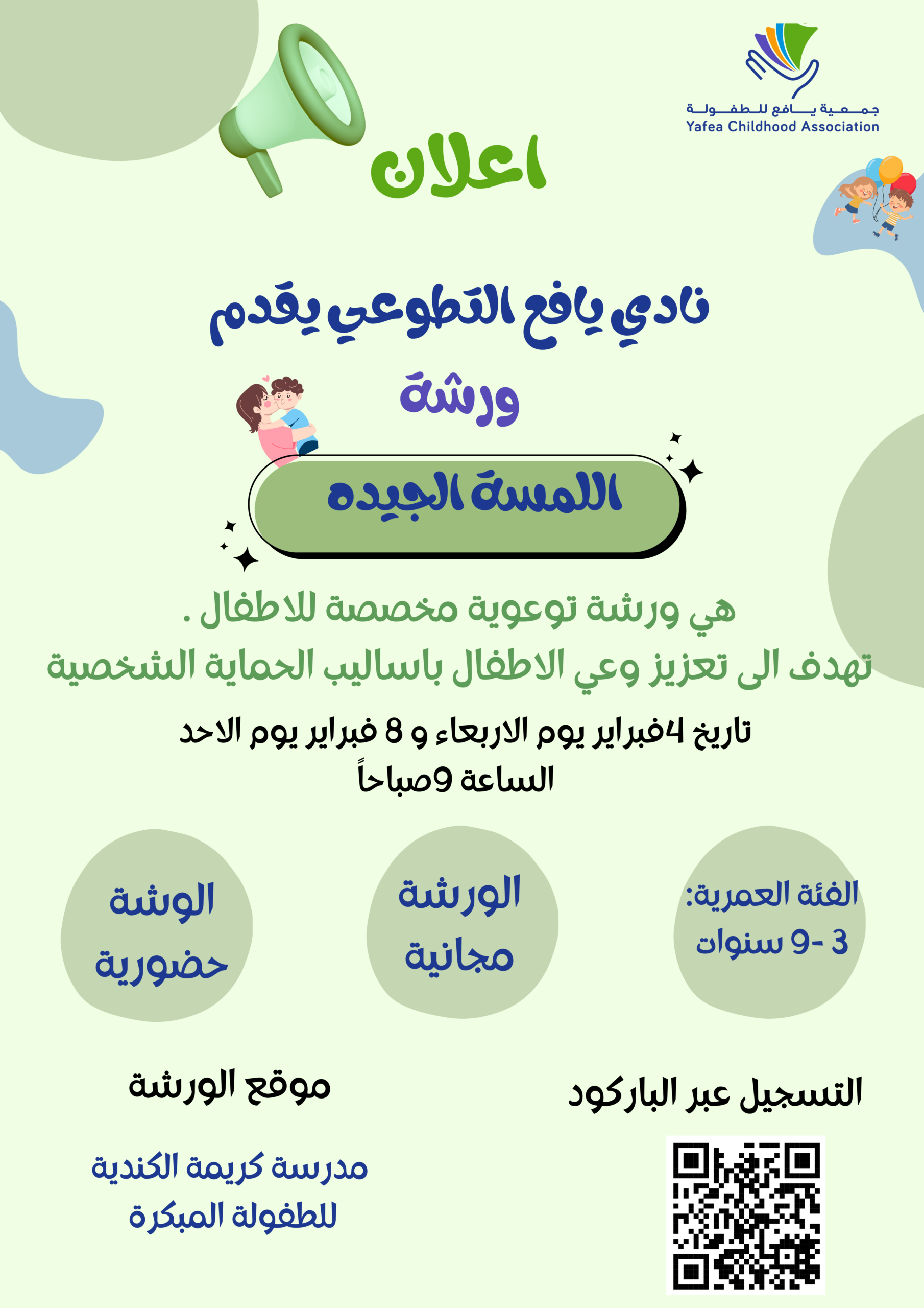 جمعية يافع للطفولة, جمعية مرخصة من المركز الوطني لتنمية القطاع غير الربحي برقم (5442). نعمل على تلبية احتياجات الطفولة وتعزيز نموهم الشامل في جوانب حياتهم, ضمن بيئة داعمة تساهم في رفع مستوى الوعي والثقافة المجتمعية. نسعى إلى تقديم البرامج والمبادرات والمشاريع والخدمات الاجتماعية, والمساهمة في البحوث والدراسات المتعلقة بالطفولة, وبناء شراكات مجتمعية فاعلة, وإعداد كوادر مؤهلة تسهم في خلق بيئة تربوية محفزة تساعد الأطفال على إبراز إمكاناتهم, وذلك ضمن عمل مؤسسي متين.